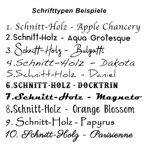Sie können mir natürlich auch eine andere Schriftart nennen oder ihr Logo hochloaden bzw. per email an schnitt-holz@outlook.com senden.